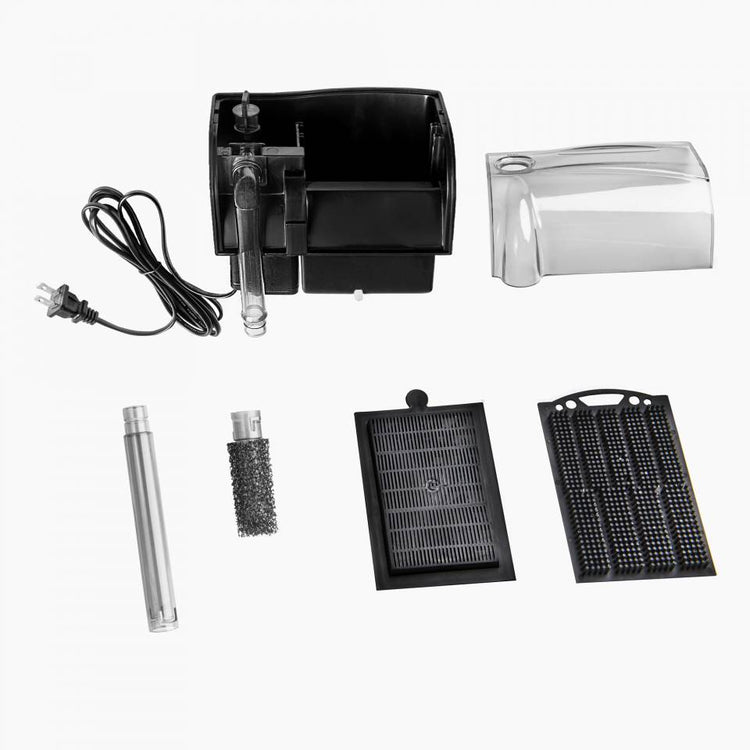 Keep your aquarium water crisp and clear with the Aquatop PFE-4 FORZA Power Filter. Designed for tanks 25–40 gallons, this hang-on-back filter delivers 120 GPH flow and features a 3-stage filtration system including mechanical, chemical, and biological filtration. The large media chamber uses replaceable sponge cartridges enhanced with premium activated carbon and a bio-grid insert for optimal bacterial colonization. Quiet operation and built-in adjustability make it ideal for both freshwater and saltwater environments. Aquatop+1